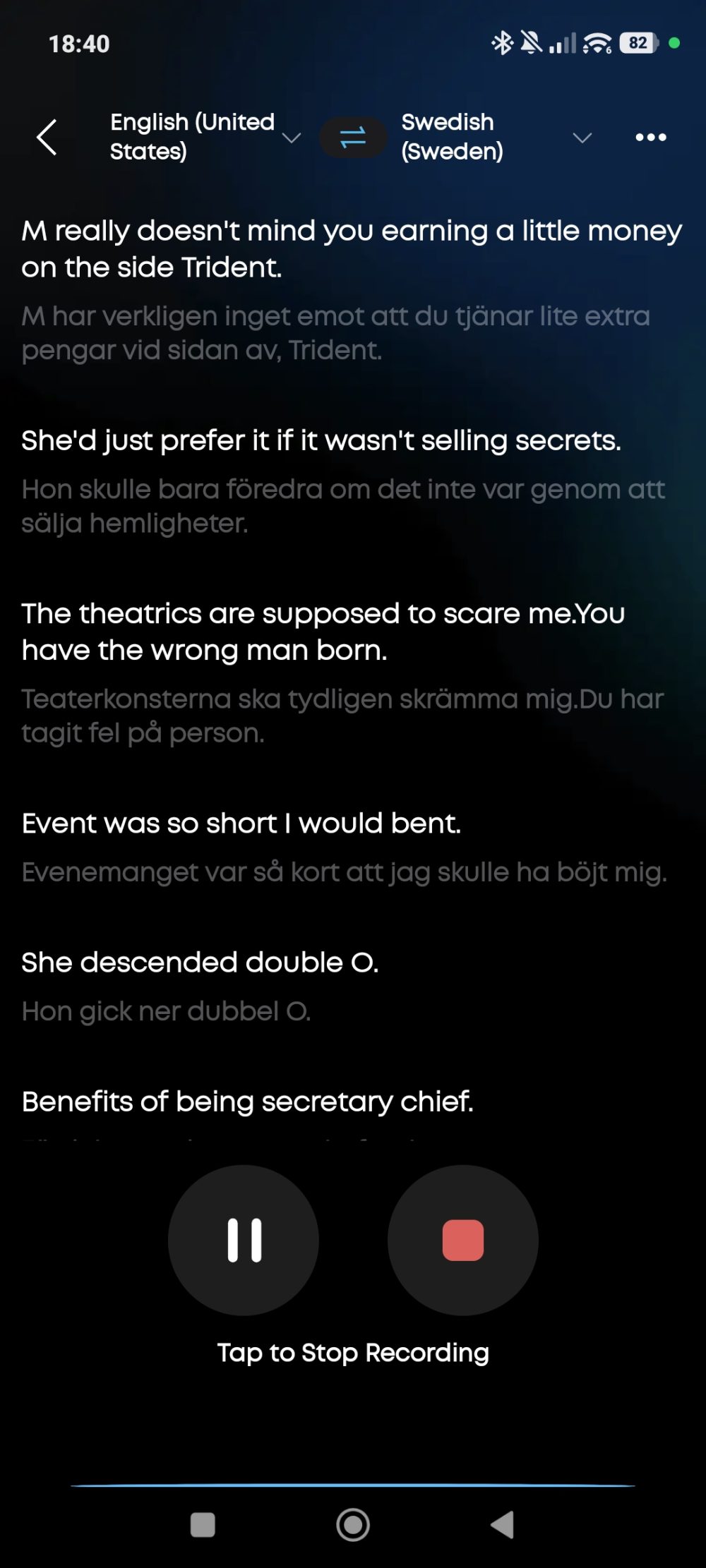 This feature enables users to passively monitor conversations in various languages. Our testing included English, French, German, Persian, and a limited scope of Chinese. Spoken content is transcribed within the accompanying application, and the translated audio is relayed through the headphones. Supporting over one hundred languages, the system is designed to automatically identify the spoken language, though its accuracy in this regard exhibits some variability. However, when the source language is manually specified, its performance is highly effective. Challenges naturally emerge with fragmented sentences or the use of colloquialisms. Observing the transcription in the app allows users to identify inaccuracies. While not entirely flawless, Soundcore has a history of introducing innovative features that often require further refinement. Previous examples include the Sleep A20’s AI-generated soundscapes, which necessitated phone activation, or the Liberty 4’s in-ear heart rate monitoring, which occasionally displayed synchronization issues. For illustrative purposes, we have included two translation examples below: one from Sveriges Radio Ekot and another from the opening scene of the 2006 film Casino Royal, allowing readers to assess the translation accuracy.