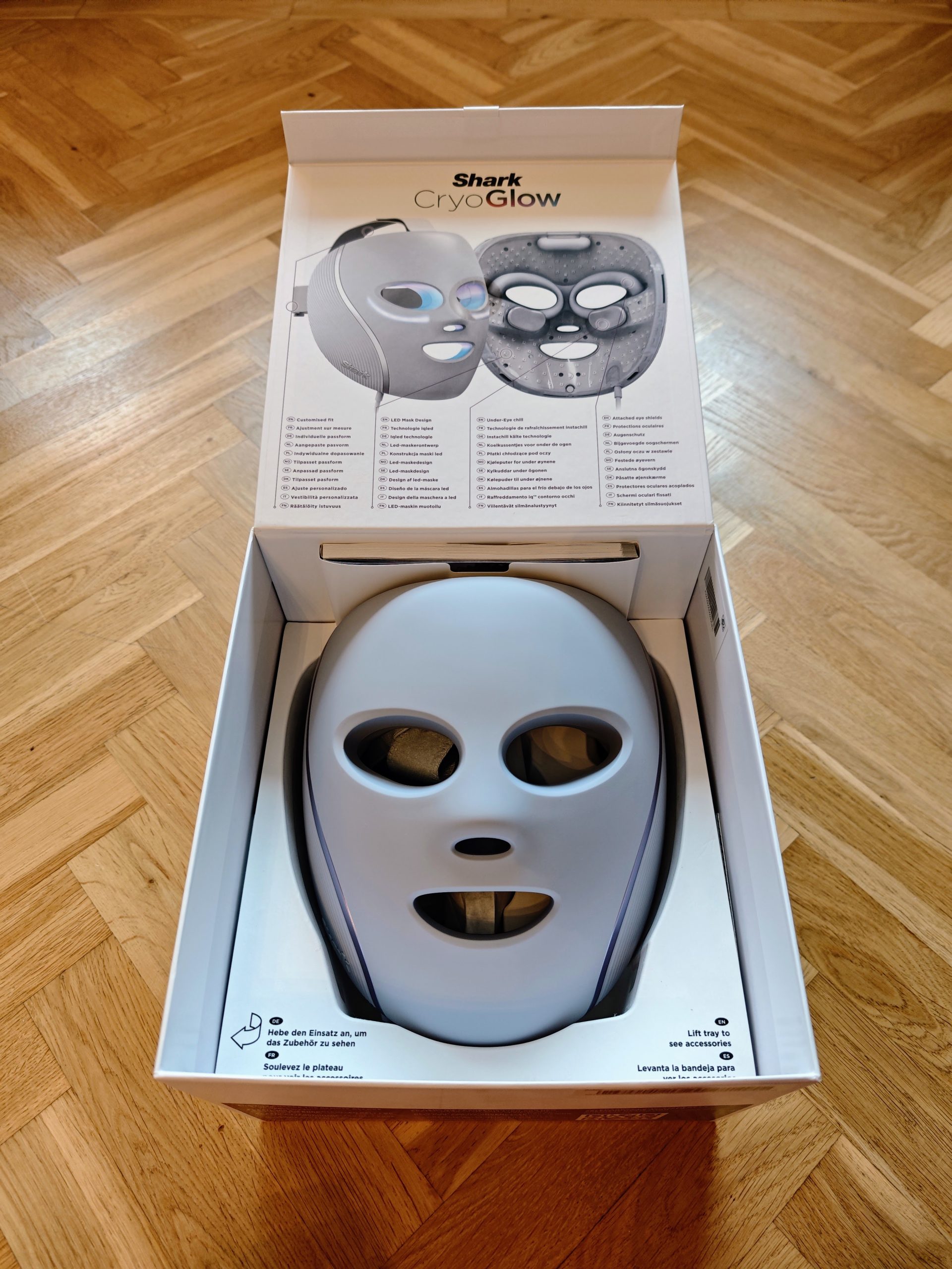 Upon unboxing the Shark CryoGlow, the immediate impression is of a robustly engineered device. Unlike the soft silicone masks that have become increasingly prevalent in the market (e.g., CurrentBody), Shark has opted for a rigid hard plastic construction. While this provides a superior sense of quality, it also places higher demands on adapting to the user’s facial contours.
