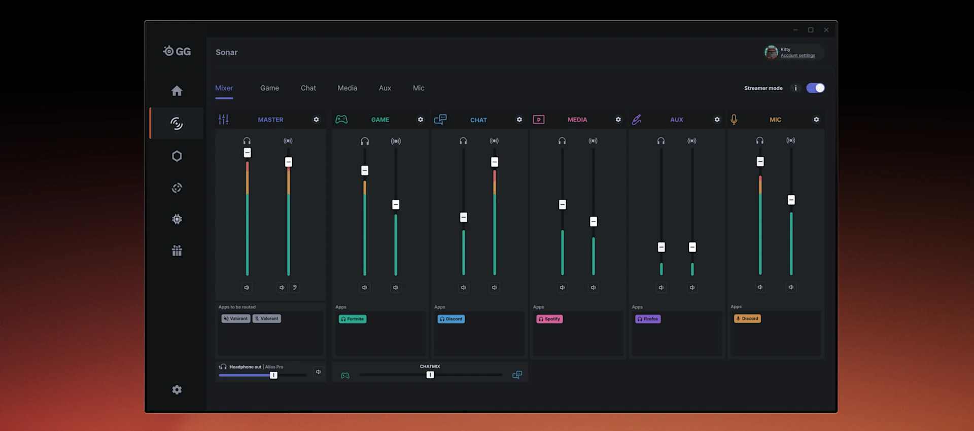 The gain control knob is encircled by a prominent LED ring, which dynamically changes color from green to yellow and red. This visual indicator offers immediate feedback, simplifying gain adjustment and preventing audio clipping. The two prominent buttons on the mixer are clearly marked, highly accessible, and customizable via Sonar, allowing for functions such as volume control or rapid muting of specific audio sources.