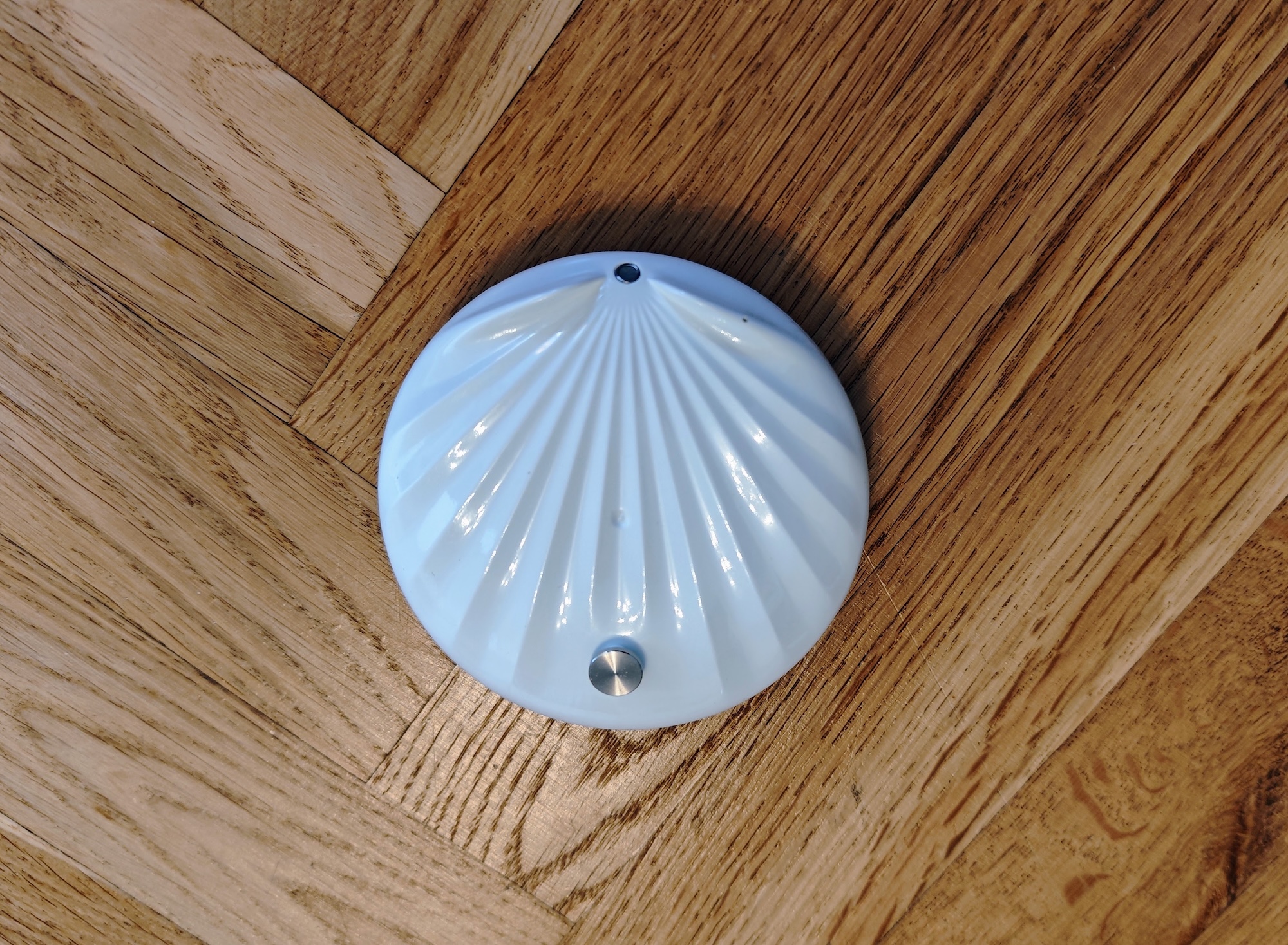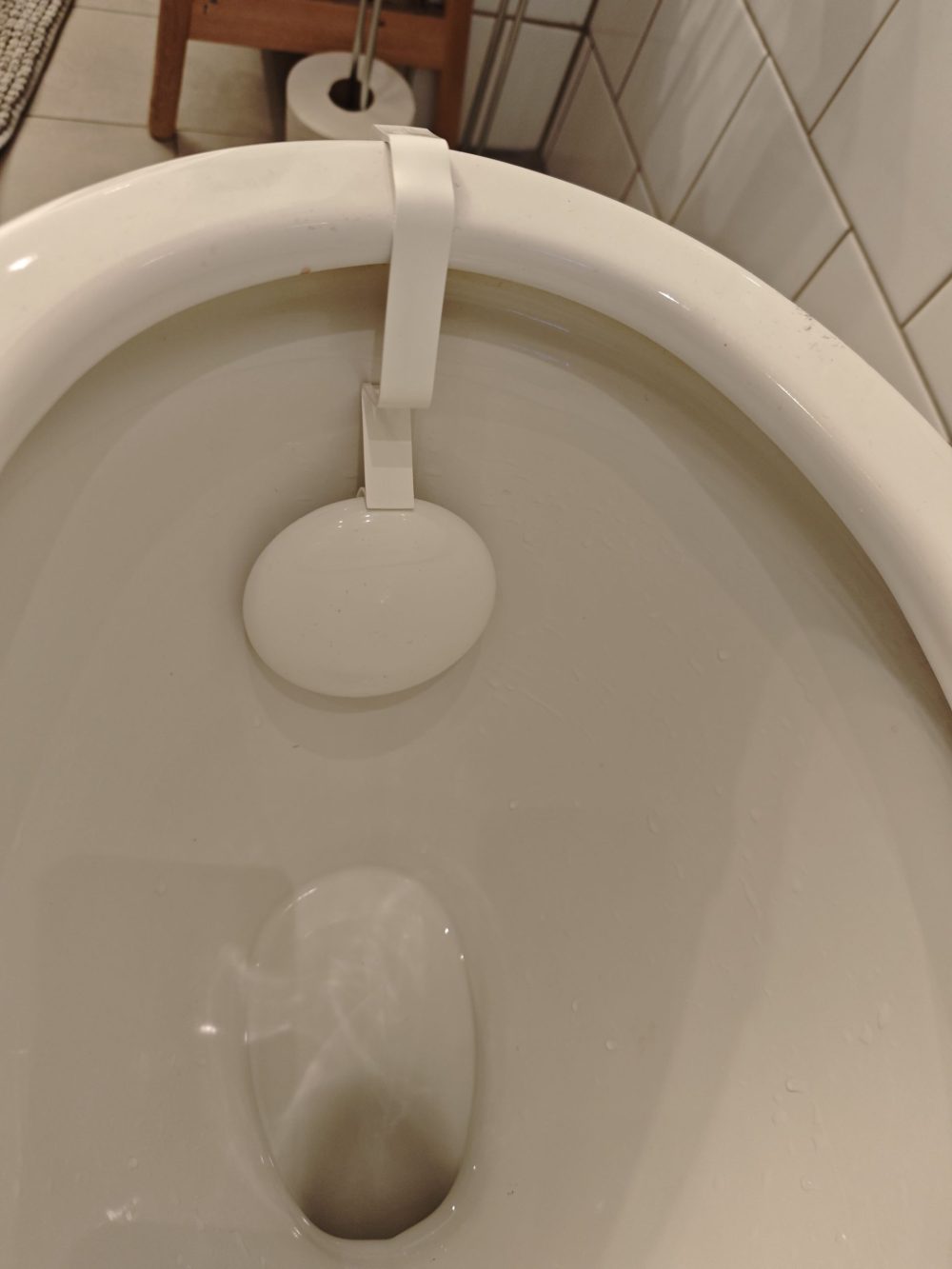 The U-Scan is a compact, shell-shaped or puck-like device designed to attach to the rim of the toilet bowl, akin to a hygiene block. While its design is elegant, the concept of installing advanced electronics in this particular location is certainly novel.